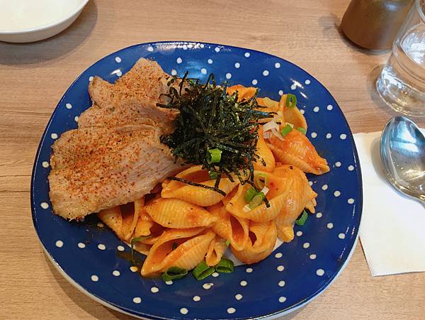 又是一道很日式的義大利麵,泡菜酸酸辣辣跟貝殼麵很搭,很Q彈的松阪豬灑上七味粉,是愛吃辣的人最佳選擇