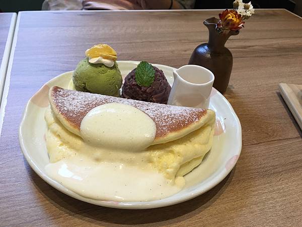 鬆餅送上桌時我們都驚呼了,因為它就像雲朵般在飄️️是一個很療癒的甜點!